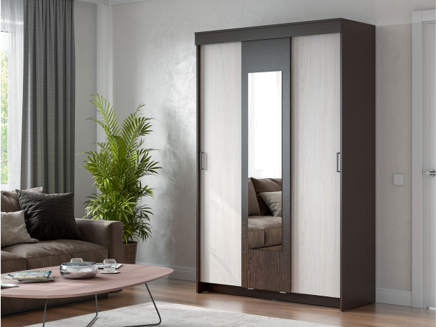 Шкаф-купе Ральф идеально впишется в обстановку небольшой спальни или прихожей. Ряд полок и широкая штанга позволят разместить различные вещи и обувь. Стильное сочетание цветов украсит современный интерьер.