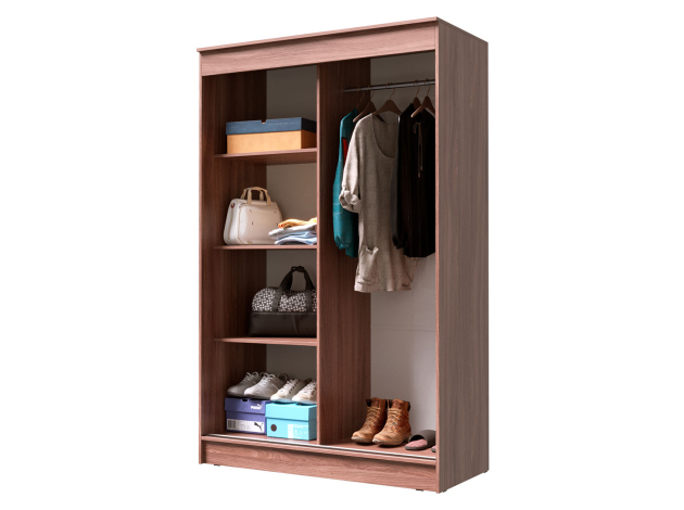 Шкаф-купе Элегант 4 — отличный вариант, который поможет разместить все необходимые вещи в спальне, прихожей или гостиной. Широкая штанга и полки станут отличными помощниками в хранении одежды.
