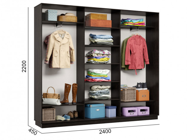 Шкаф-купе Маршал позволит держать в порядке огромное количество вещей. На штангу можно повесить верхнюю одежду, костюмы и платья, а на полках разместятся коробки, предметы быта, сумки и аксессуары. Сзади фасады проклеены пленкой, которая не даст осколкам разлететься, если зеркало разобьется.