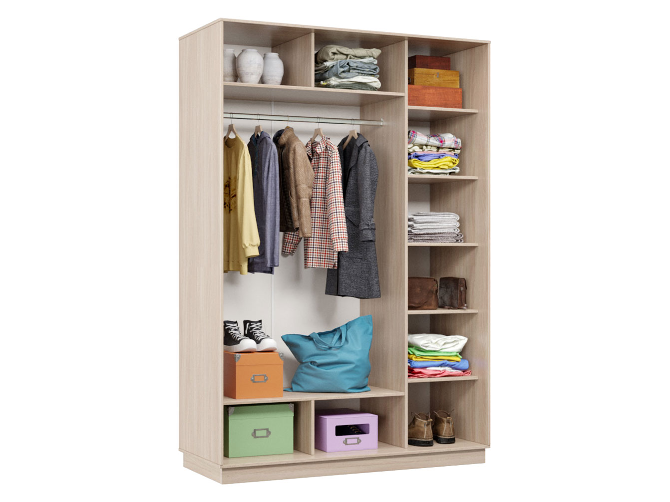 Шкаф-купе Маршал Ясень шимо светлый / Зеркало / Шампань, алюминий 150 см 240 см С продольной штангой и полками