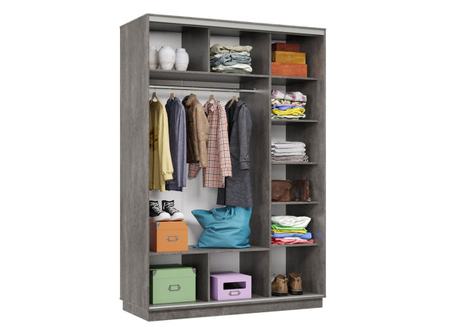 Шкаф-купе Маршал Лайт Бетон / Зеркало / Серебро, алюминий 150 см 240 см 60 см