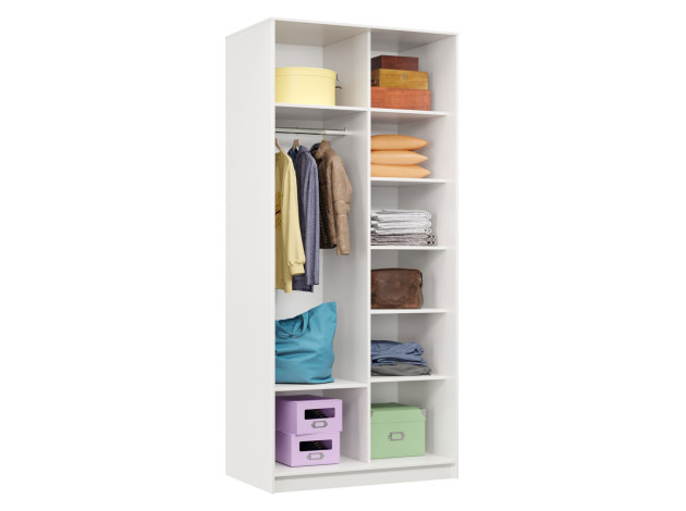 • Шкаф-купе Маршал Лайт позволит организовать полноценную гардеробную зону благодаря функциональному внутреннему наполнению. Модель станет важным элементом интерьера спальни, гостиной или прихожей. Штанга и множество полок разместят всё необходимое, а зеркальные вставки на фасадах визуально увеличат пространство.