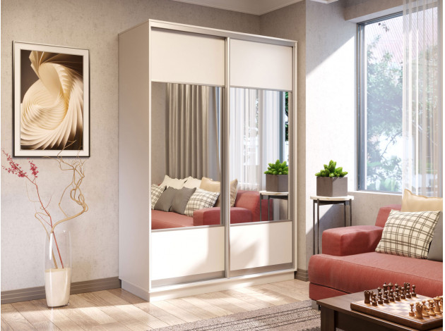Шкаф-купе Маршал Лайт Белый / Зеркало / Серебро, алюминий 120 см 240 см 45 см