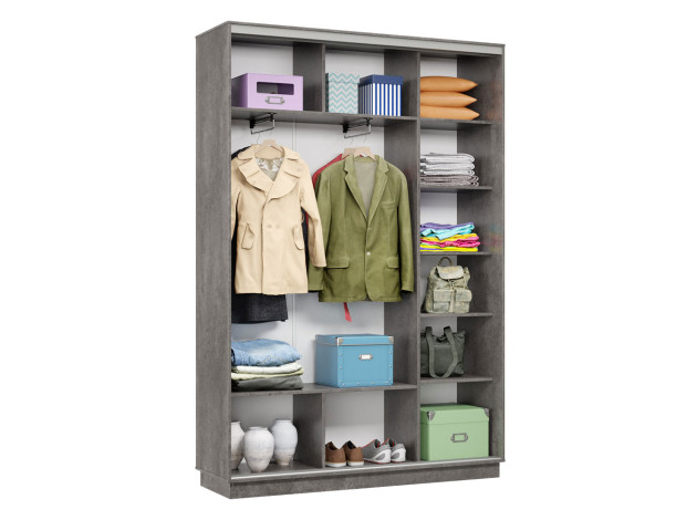 Шкаф-купе Маршал Лайт Бетон / Зеркало / Серебро, алюминий 150 см 240 см 45 см