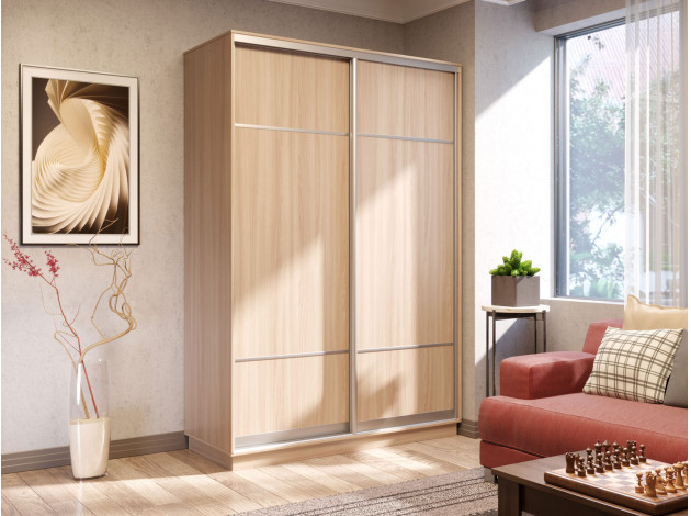 Шкаф-купе Маршал Лайт Ясень шимо светлый / Серебро, алюминий 120 см 240 см 60 см