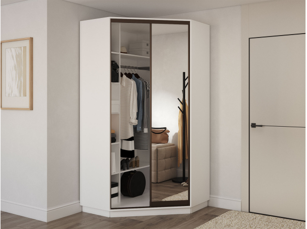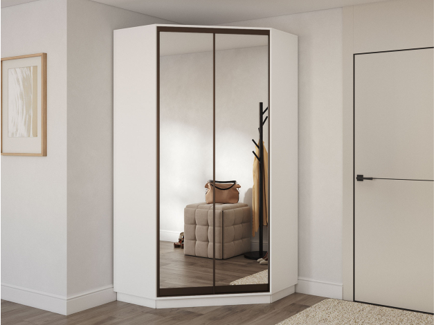Угловой шкаф-купе Маршал Белый / Зеркало / Бронза, алюминий