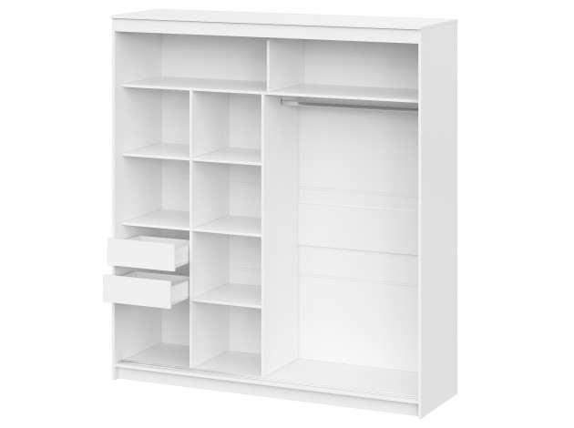 Шкаф-купе Шерри поможет эффективно организовать пространство для хранения одежды, обуви и аксессуаров, а также станет гармоничным дополнением современного интерьера. Внутреннее наполнение шкафа поделено на два равных по размеру отделения, одно из которых оснащено полками и двумя выкатными ящиками, а другое — продольной штангой для вешалок. Правый фасад дополнен зеркальным полотном в полный рост, которое позволит детально оценить подобранный образ и сделает помещение визуально просторнее.