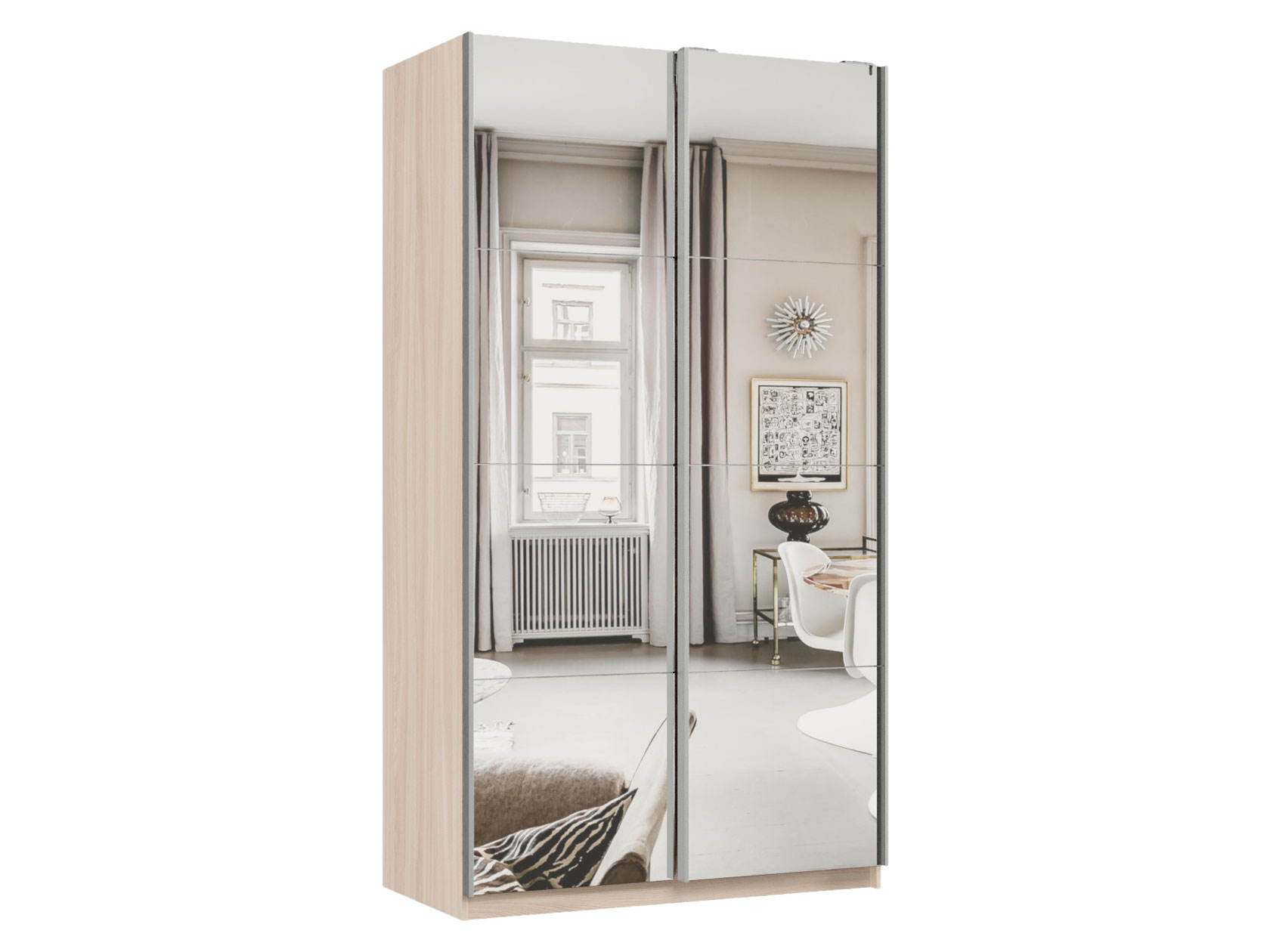 Шкаф-купе Смарт Зеркальный Ясень Шимо светлый / Зеркало 220 см 120 см