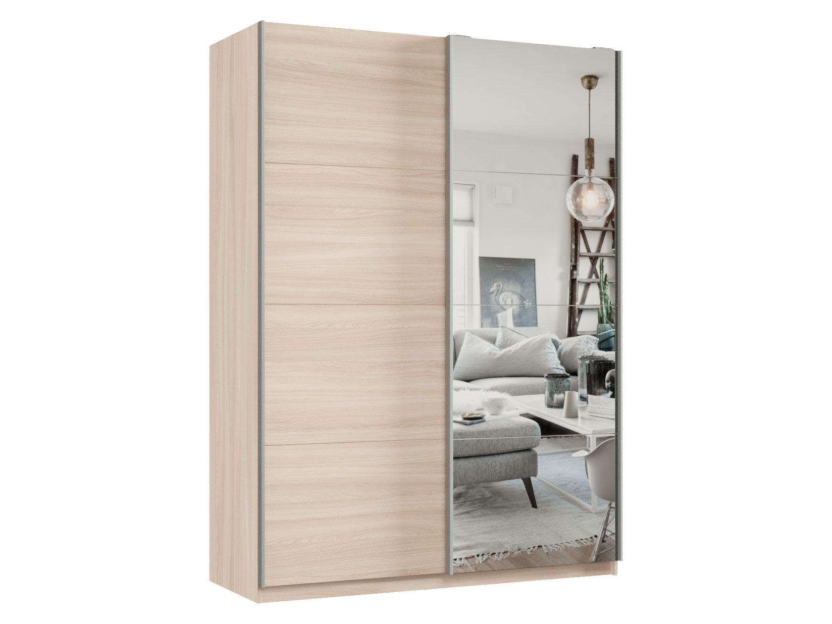 Шкаф-купе Смарт Зеркальная створка Ясень Шимо светлый / Зеркало 220 см 160 см