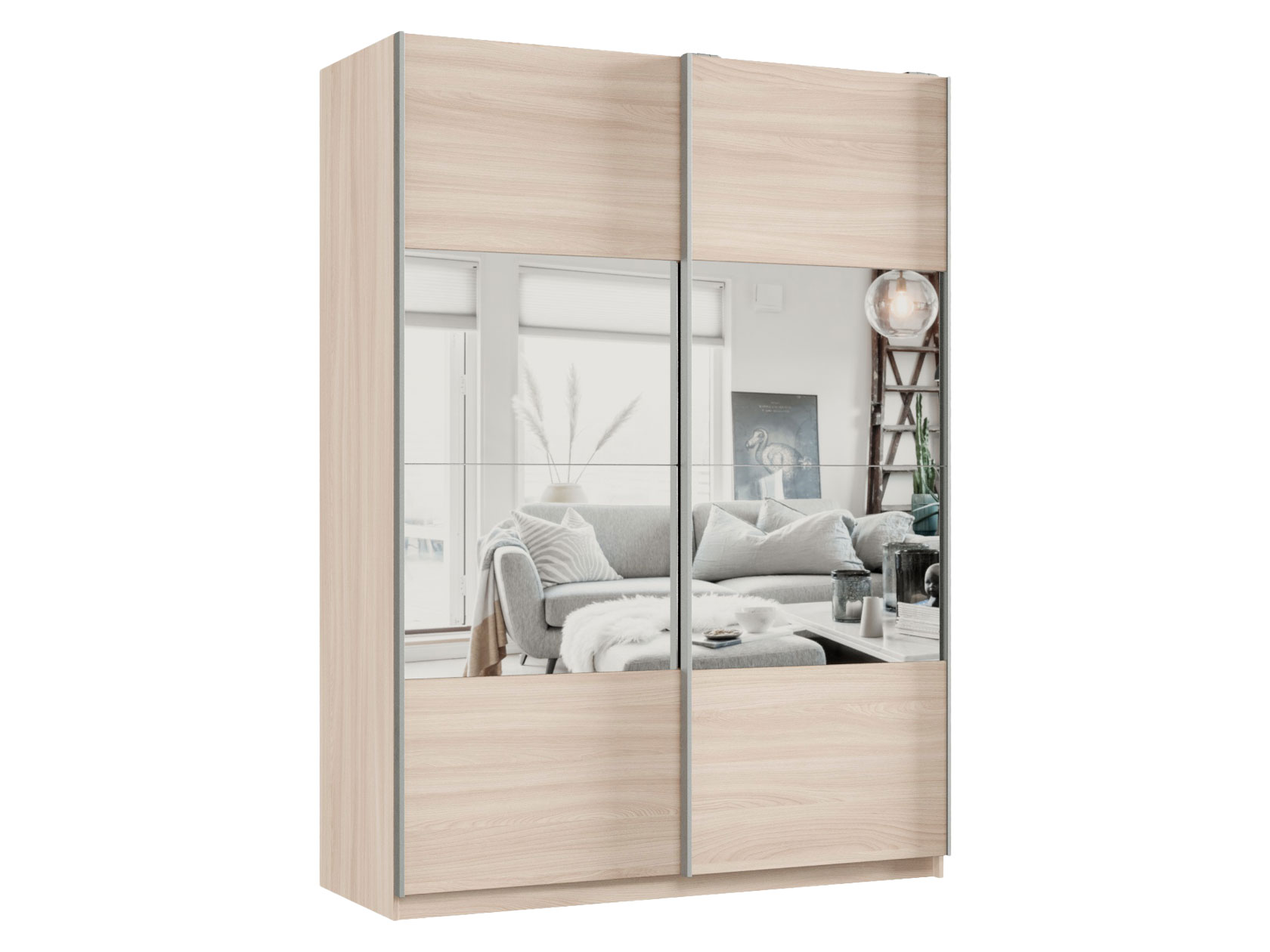 Шкаф-купе Смарт Зеркальная секция Ясень Шимо светлый / Зеркало 220 см 160 см