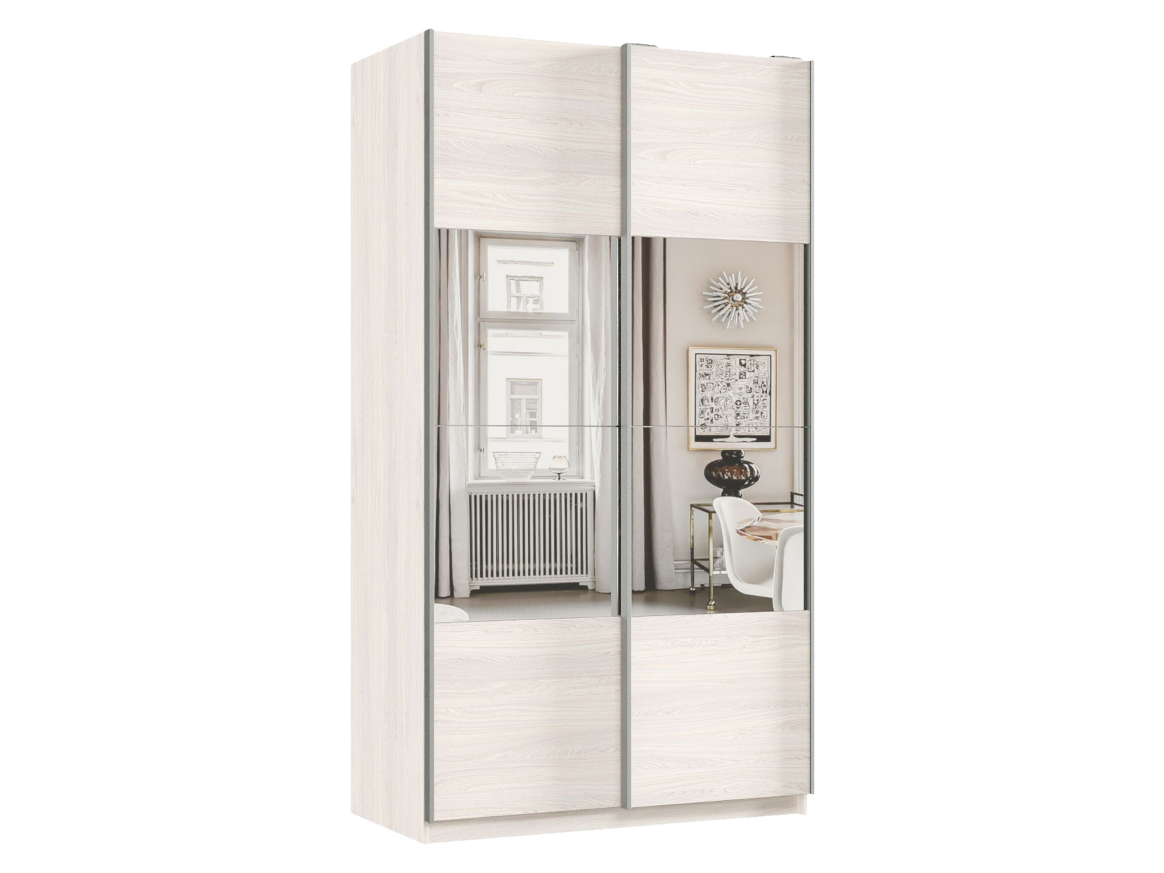 Шкаф-купе Смарт Зеркальная секция Ясень Анкор светлый / Зеркало 220 см 120 см
