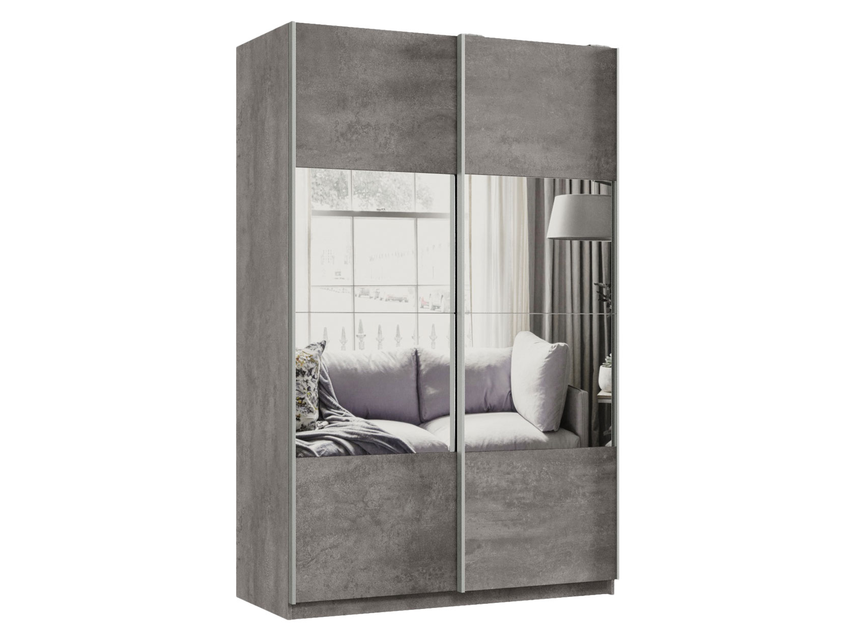Шкаф-купе Смарт Зеркальная секция Бетон / Зеркало 220 см 140 см