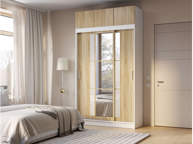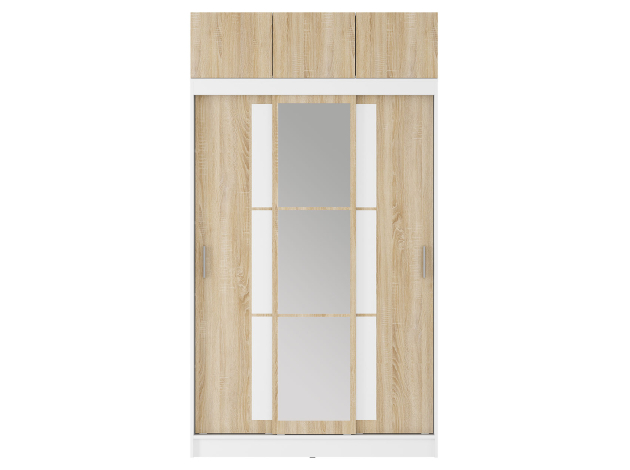 Шкаф-купе Тайм Дуб Сонома / Белый / Зеркало С антресольным шкафом
