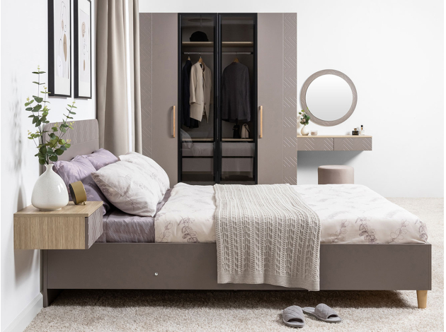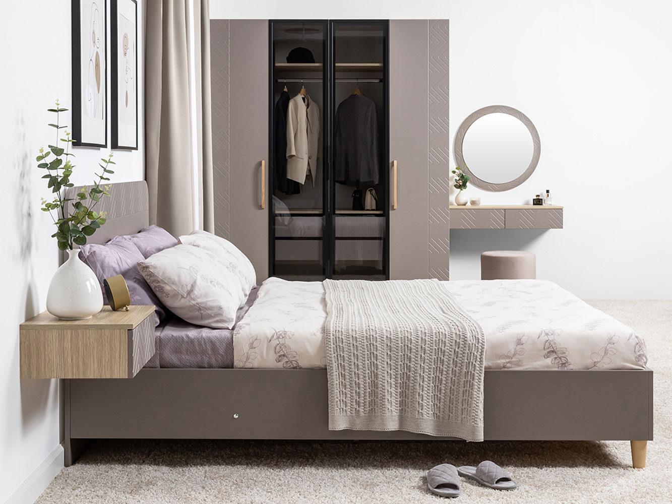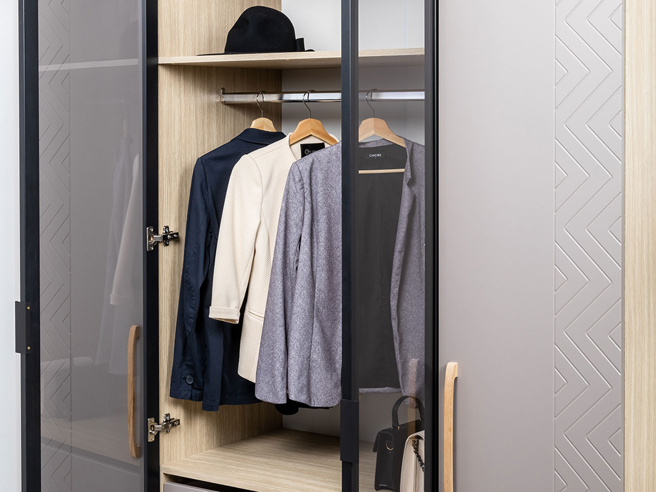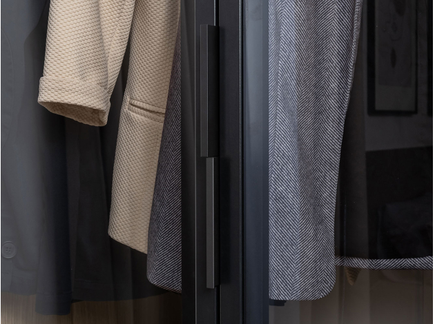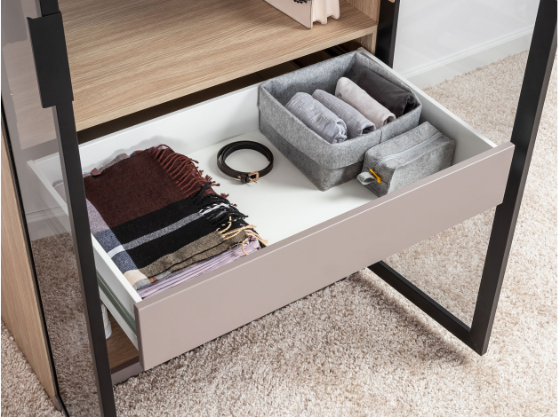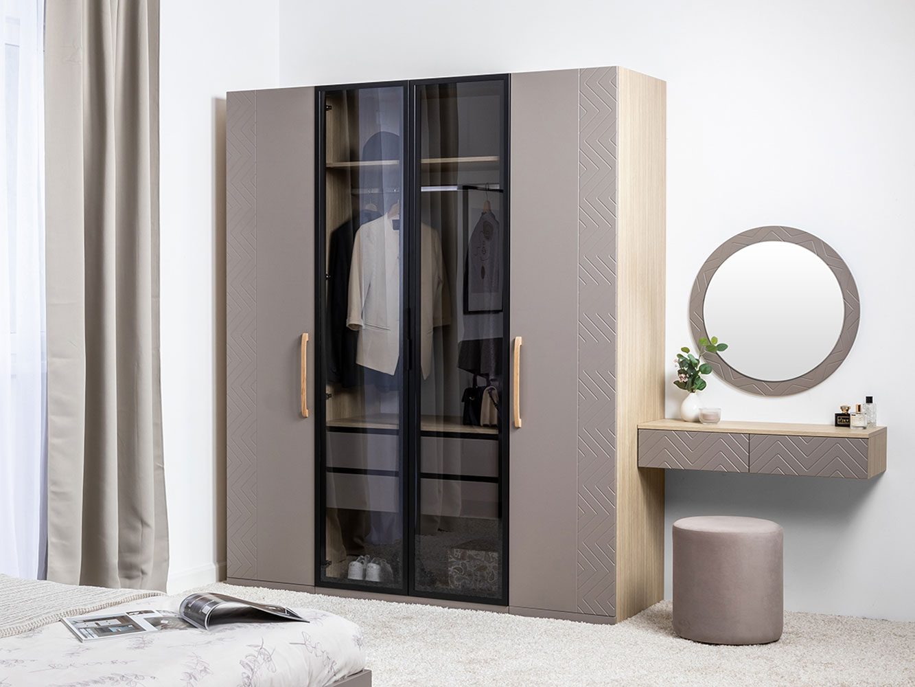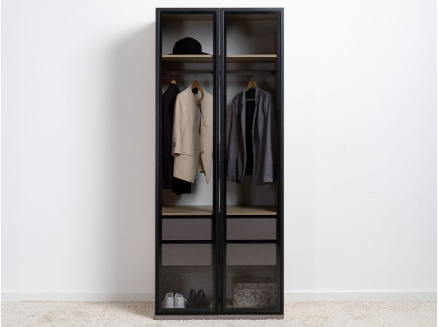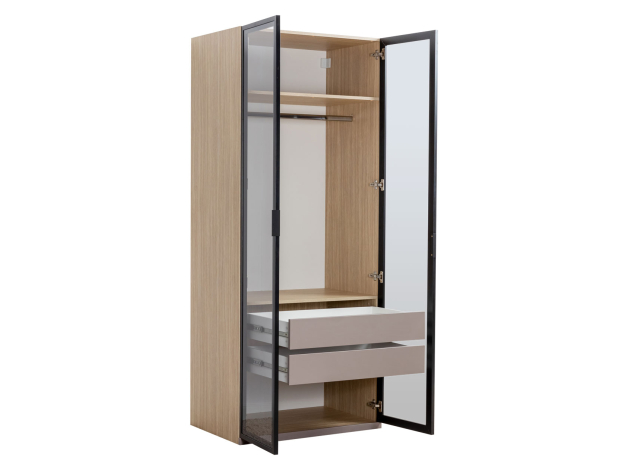 Распашной шкаф Амьен станет стильным акцентом комнаты. Дверцы выполнены из затемненного стекла, что обеспечивает элегантное хранение предметов гардероба и личных вещей. На полках можно разместить футболки, джинсы и аксессуары. Выдвижные ящики подходят для разных мелочей, которые нужно спрятать.