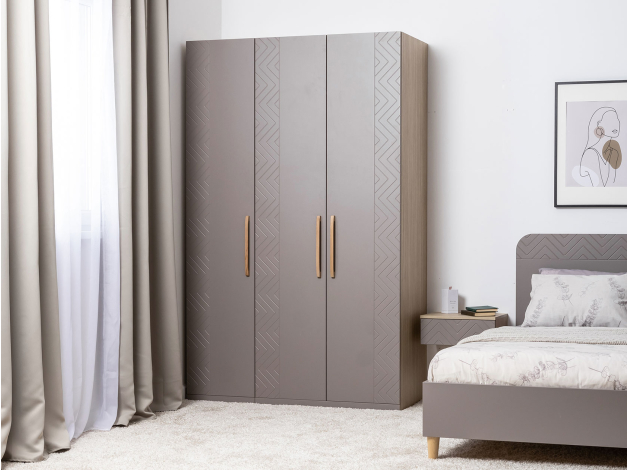Распашной шкаф Амьен станет украшением интерьера и добавит обстановке индивидуальность. Внутреннее пространство разделено на удобные секции, что позволяет аккуратно хранить одежду, обувь и постельное белье. Фасады декорированы фрезеровкой в виде тонких линий. Деревянные ручки придают модели особые шарм и теплоту.