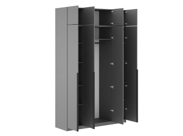 Антресоль Арно 4 секции — простой и практичный способ дополнить систему хранения. Внутри можно удобно разместить аксессуары, сезонные вещи и коробки с обувью. Дверцы открываются легким нажатием.