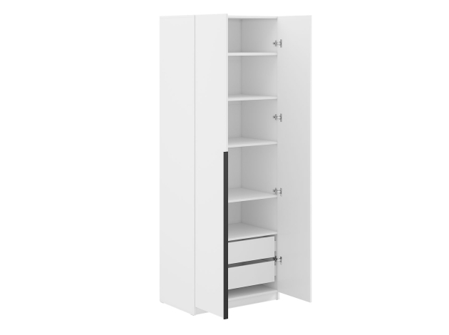 Распашной шкаф Арно 2 двери Белый текстурный С полками и ящиками Без антресоли