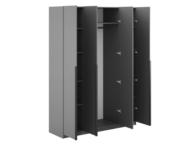 Распашной шкаф Арно 4 двери — вместительная модель, с которой легко организовать максимально удобную систему хранения. Можно выбрать один из двух вариантов наполнения: с просторной нишей по центру или с ящиками для белья и аксессуаров. В дизайне сделан акцент на простую геометрию, которую подчеркивают тонкие контрастные ручки.