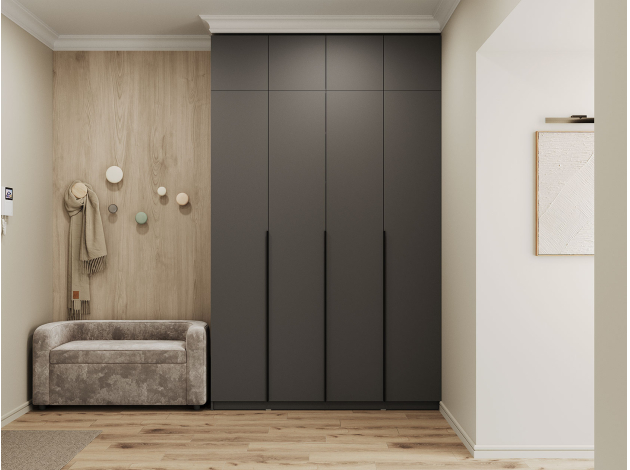 Распашной шкаф Арно 4 двери Графит С полками, ящиками и штангой С антресолью