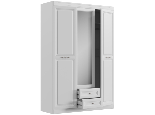 Распашной шкаф Аврора позволит удобно разместить любые предметы гардероба благодаря продуманному наполнению. Для комфортной эксплуатации дверцы оснащены петлями с доводчиком, а ящики — направляющими полного выдвижения. Классический стиль модели подчеркивают фасады с фрезеровкой и изящные ручки.