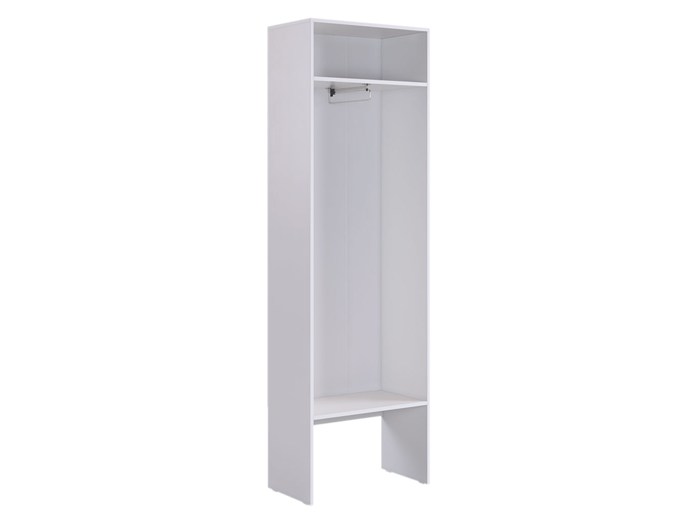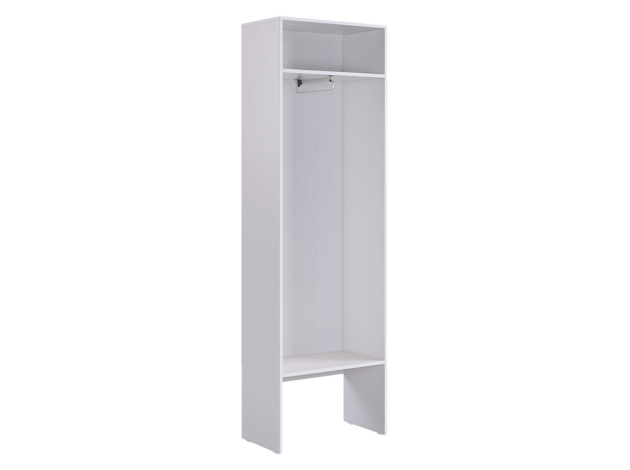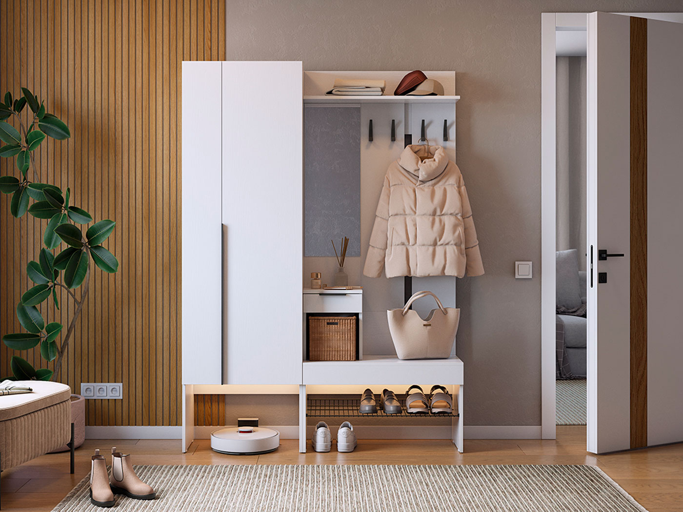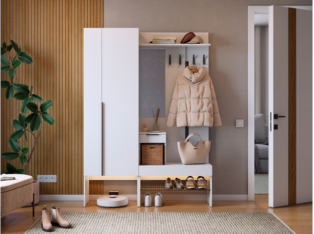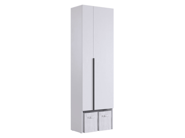 Распашной шкаф Баско 60 см оборудован штангой, где удобно расположить одежду на вешалках. Внутри достаточно места для коробок и других вещей, которые могут понадобиться в прихожей. Современный дизайн с гладкими фасадами и простыми вертикальными ручками поддерживает тренд на минимализм в интерьере.