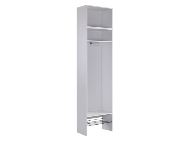 Распашной шкаф Баско 60 см оборудован штангой, где удобно расположить одежду на вешалках. Внутри достаточно места для коробок и других вещей, которые могут понадобиться в прихожей. Современный дизайн с гладкими фасадами и простыми вертикальными ручками поддерживает тренд на минимализм в интерьере.
