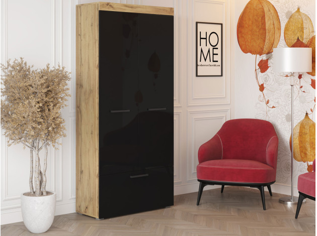 Распашной шкаф Бастон Дуб Вотан / Черный глянец