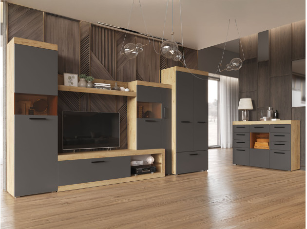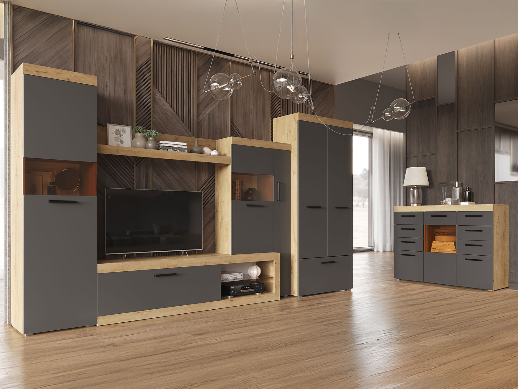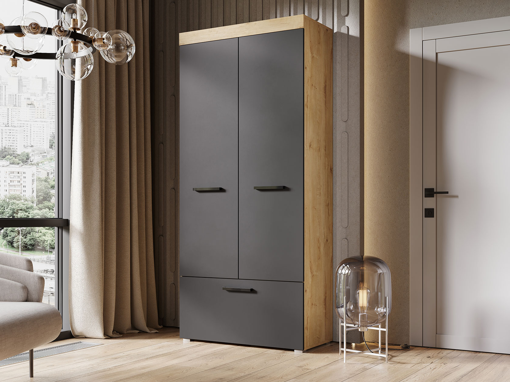 Распашной шкаф Бастон Дуб Вотан / Графит Софт
