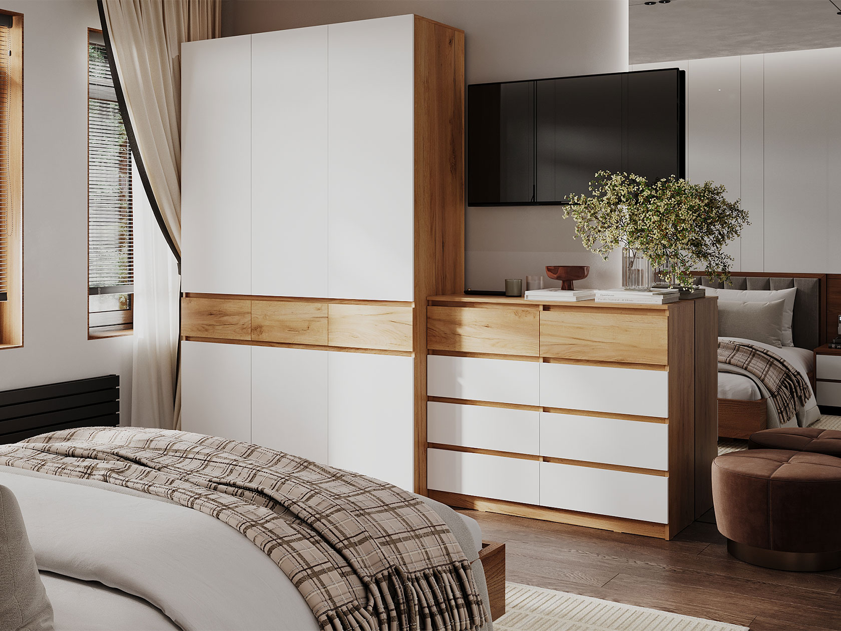 Набор мебели Бостон Лайт Дуо станет универсальным решением для любого интерьера. Комод поможет организовать хранение белья, аксессуаров и других мелочей. Распашной шкаф с продуманной внутренней организацией подходит для размещения одежды любой длины и сложенных вещей. Древесная текстура в отделке добавляет обстановке уютные акценты.