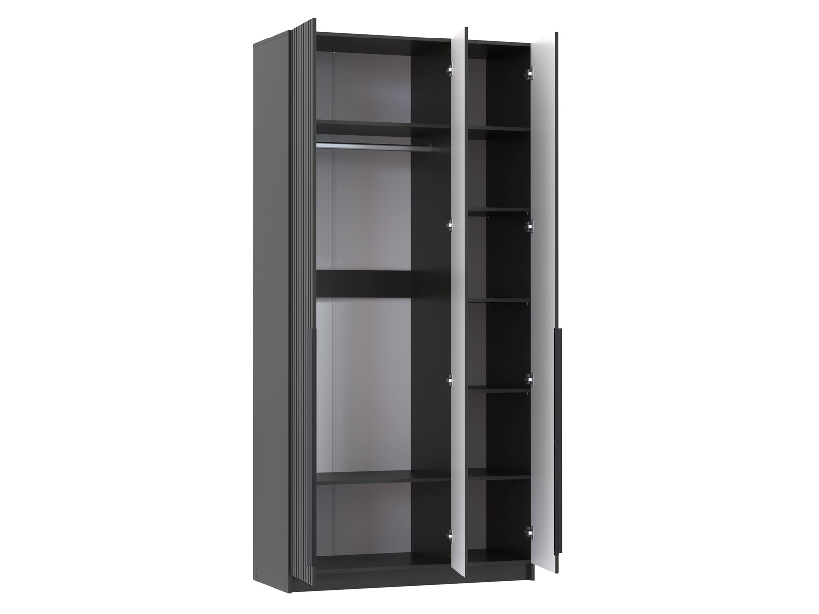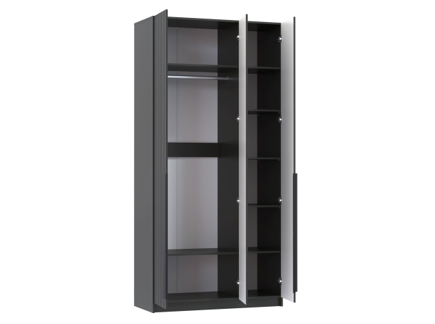 Распашной шкаф Брандо Миди элегантный, просторный и очень удобный. Стильная фрезеровка и тонкие вертикальные ручки подчеркивают утонченный облик модели. Внутреннее наполнение включает отделение со штангой и полки, что позволяет аккуратно разместить одежду из деликатных тканей, трикотаж и другие предметы гардероба.