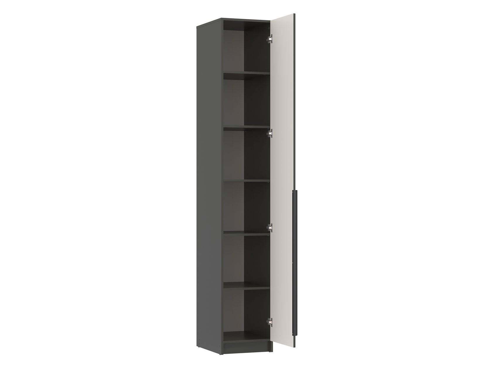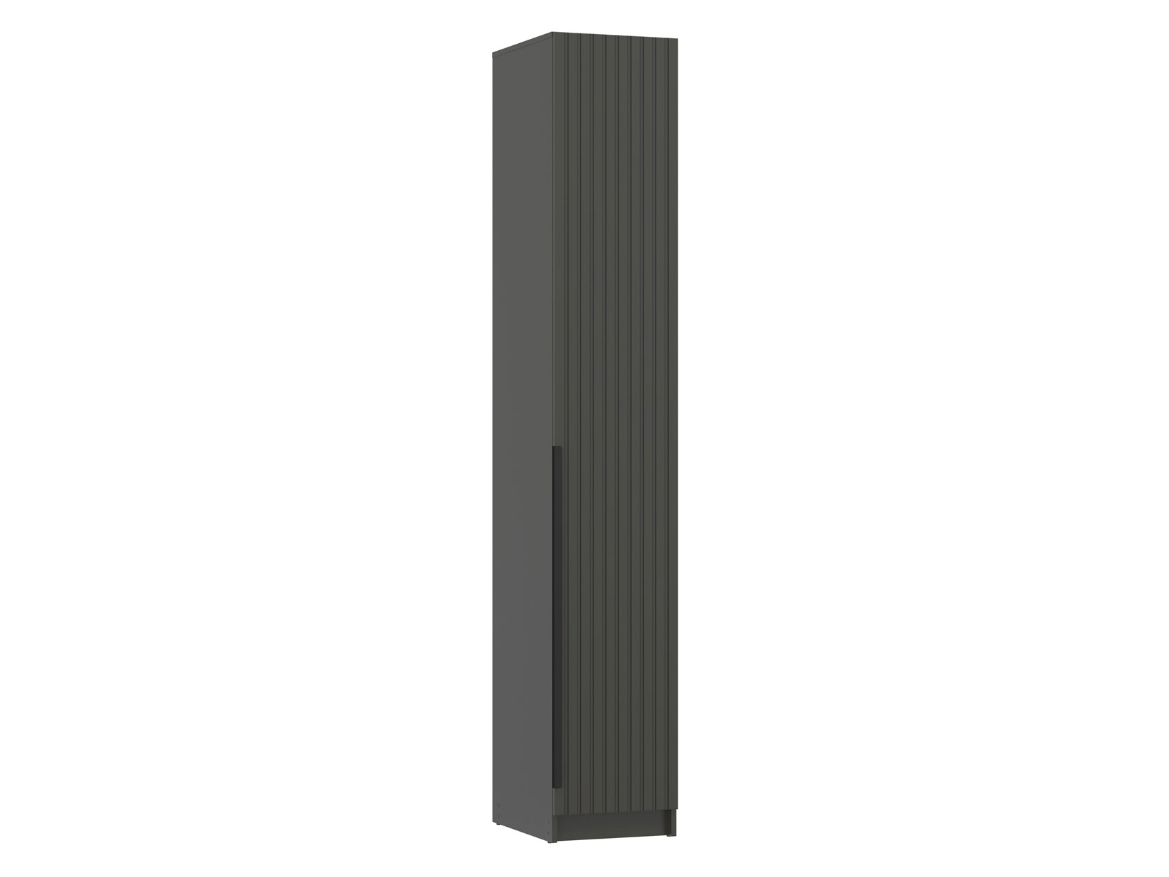 Пенал Брандо Мини оснащен полками, где удобно хранить книги, одежду в сложенном виде и другие необходимые вещи. Узкая модель будет уместно смотреться даже в ограниченном пространстве. Фрезеровка в виде вертикальных линий сочетается с тонкой продолговатой ручкой, что придает мебели современный и аккуратный вид.