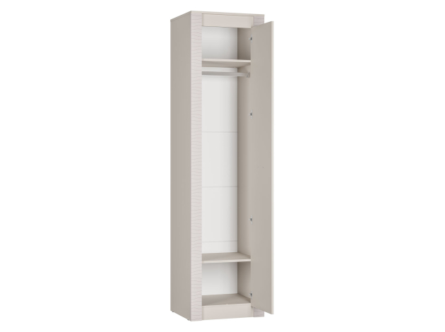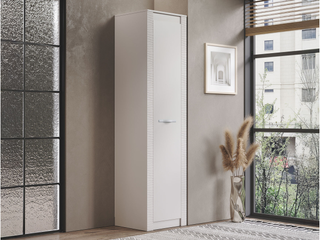 Шкаф-пенал Далия — компактное решение для меблировки комнаты с ограниченным пространством. Продольная штанга позволит развесить длинную одежду, а на полках найдется место коробкам с обувью, аксессуарам и другим предметам гардероба. Сдержанный дизайн сочетается с разными стилями интерьера.