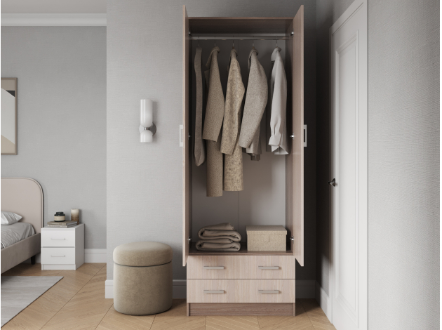 Распашной шкаф Эко Дуэт Ясень Шимо темный / Ясень Шимо светлый Со штангой