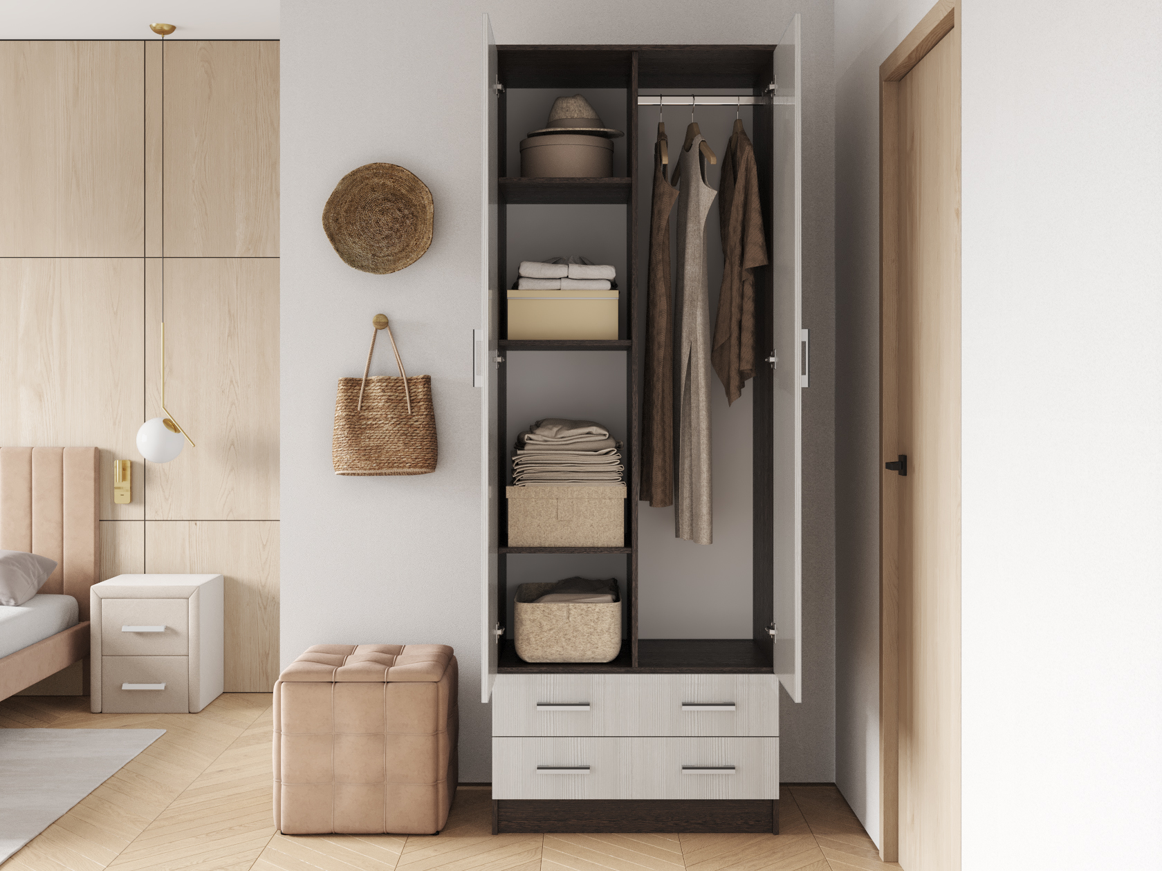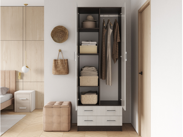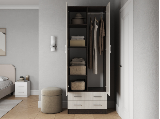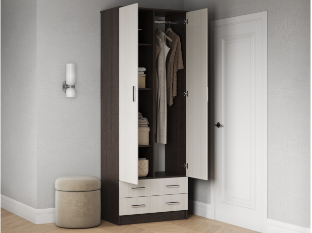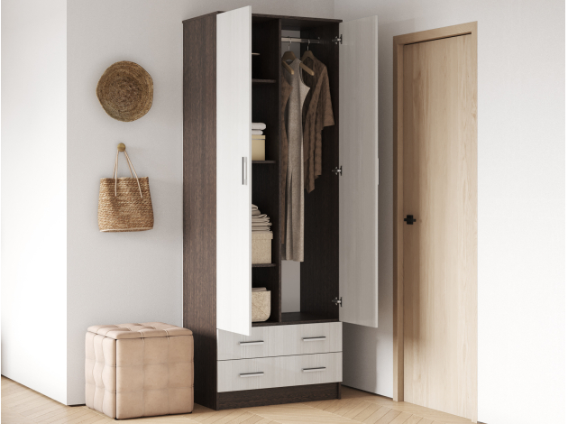 Распашной шкаф Эко Дуэт Венге / Лоредо С полками и штангой