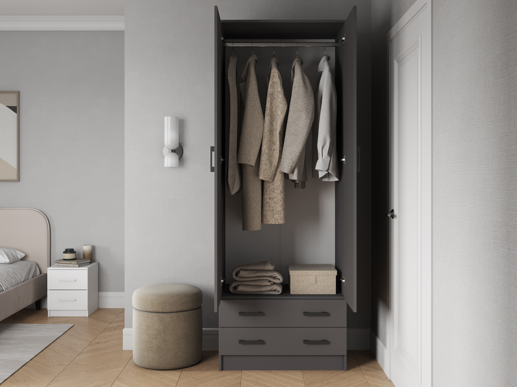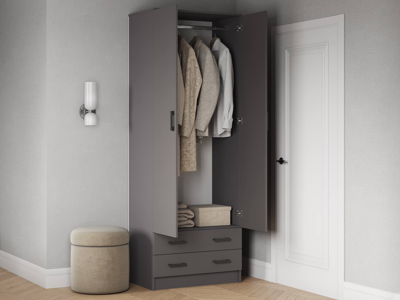 Распашной шкаф Эко Дуэт Графит Со штангой