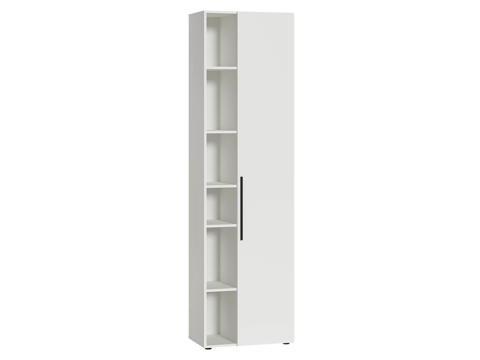 Распашной шкаф Эйр с полками станет практичным дополнением интерьера. Компактную модель легко интегрировать в ограниченное пространство. Открытые полки позволят удобно разместить предметы декора, книги и другие вещи, которые хочется держать на виду. За глухой распашной дверцей можно хранить одежду и текстиль. Гладкий фасад устойчив к царапинам и долго сохраняет первоначальный вид, а пластиковые опоры защищают напольное покрытие от повреждений.