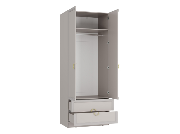 Комплект шкафов Эстетика украсит обстановку элегантным дизайном и добавит комнате функциональности. Внутреннее наполнение позволит распределить все категории вещей: от повседневной одежды до домашнего текстиля и аксессуаров. Матовые фасады с объемной фрезеровкой и контрастной фурнитурой сочетаются с разными стилями оформления пространства.