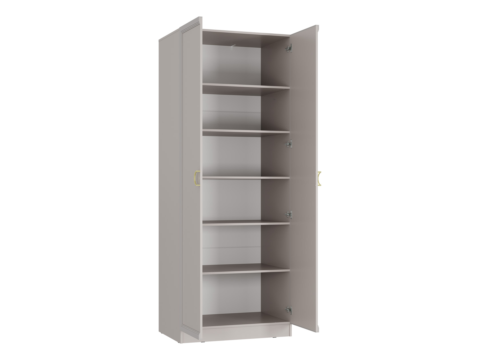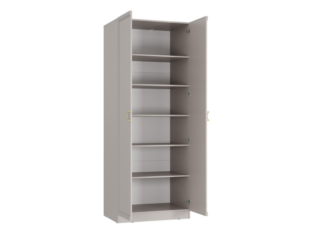 Распашной шкаф Эстетика Стандарт поможет организовать аккуратное хранение всех предметов гардероба. Продуманное внутреннее наполнение позволяет расположить одежду на вешалках, а также поддерживать порядок среди домашнего текстиля, коробок с обувью и аксессуаров. Контрастные ручки в золотом оттенке служат небольшими акцентами пространства.
