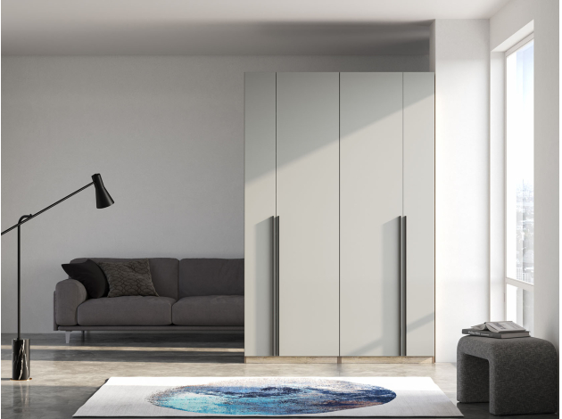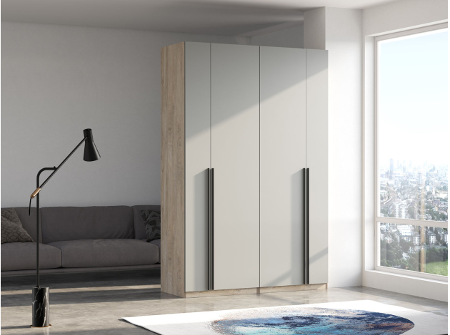 Распашной шкаф Этна 150 см 6 полок идеально подходит для хранения одежды, белья и аксессуаров. Внутреннее пространство включает штанги для вешалок и ниши, которые позволяют удобно разместить повседневные вещи. Гладкие матовые фасады с вертикальными ручками эстетично выглядят в любом интерьере.