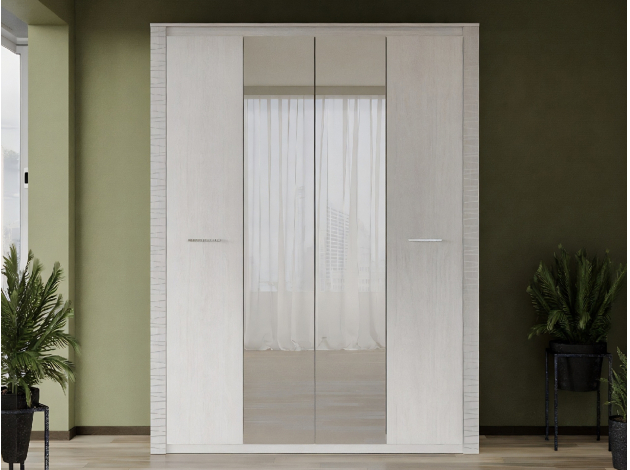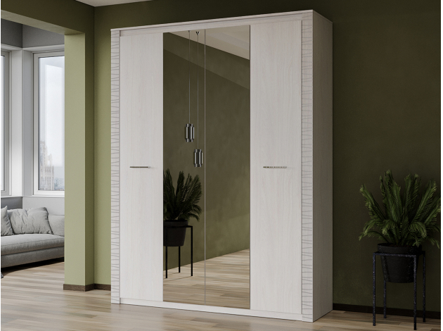 Распашной шкаф Гамма поможет организовать пространство для хранения одежды и стильно дополнит современный интерьер. За дверями скрыты две вместительные секции с продольными штангами для вешалок и две антресольные полки. Во внутреннее наполнение опционально можно добавить полки из соответствующего комплекта. Фасады дополнены зеркальными полотнами в полный рост, которые позволят в деталях оценить подобранный образ и сделают помещение визуально просторнее и светлее.