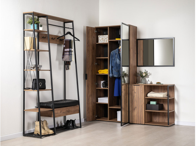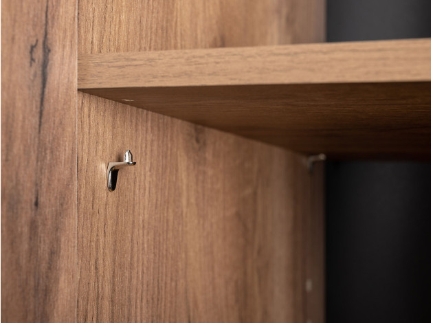 Распашной шкаф Гранд функционально дополнит прихожую в стиле лофт. Внутреннее наполнение представлено усиленной выдвижной штангой для вешалок и рядом полок для сложенной одежды. Распашные дверцы оснащены петлями с доводчиками, что позволит избежать хлопков и резкого закрывания, значительно увеличивая срок службы модели. Один из фасадов дополнен зеркальным полотном в полный рост, которое поможет в деталях оценить подобранный образ. Благодаря регулируемым опорам можно разместить шкаф даже на полу с неровностями.