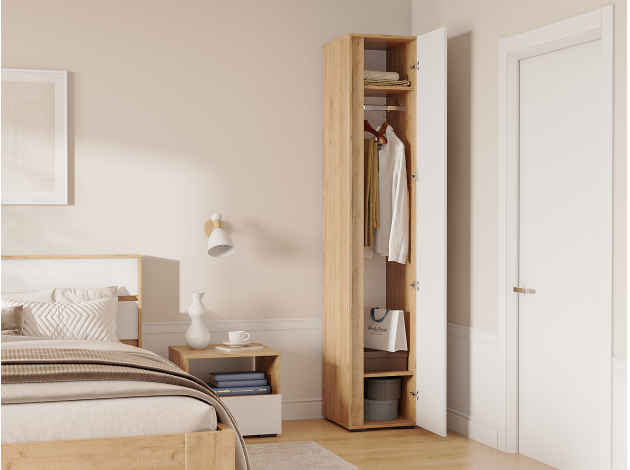 Распашной шкаф Элли Белый / Дуб Крафт золотой