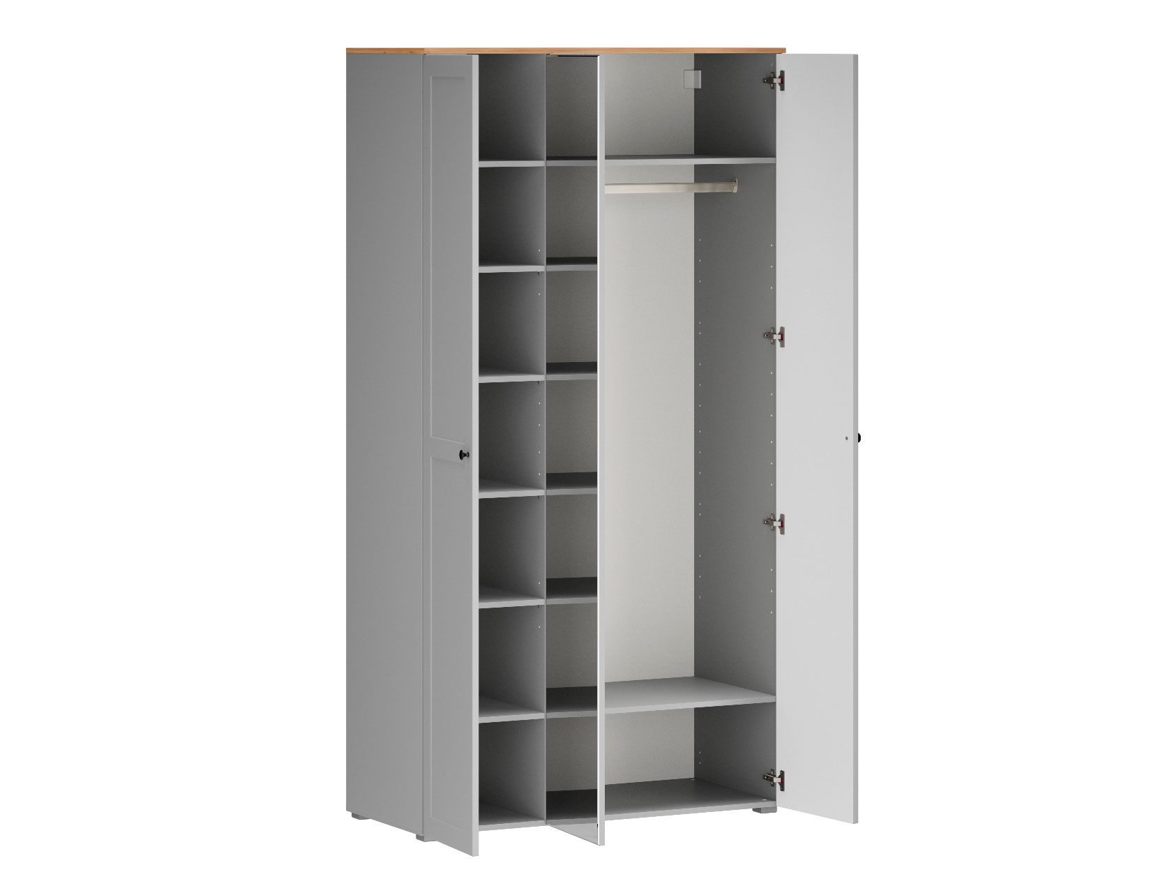 Распашной шкаф Хеминг Макси — вместительная модель, которая украсит спальню, гостиную или прихожую. Благодаря оптимальному наполнению внутри удобно хранить любую одежду, сезонные вещи и аксессуары. Строгие линии и лаконичные акценты придают мебели элегантность, позволяя интегрировать конструкцию в любой современный интерьер.