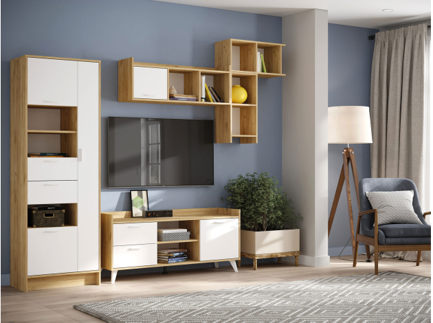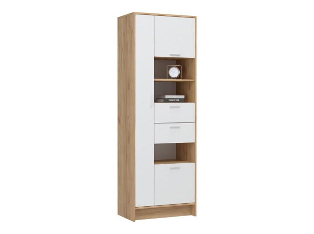 Распашной шкаф Ирис — сочетание актуального дизайна и практичности. Система хранения представлена комбинацией полок за распашными дверцами и выдвижными ящиками. Открытые ниши позволят оживить обстановку предметами декора и комнатными растениями.