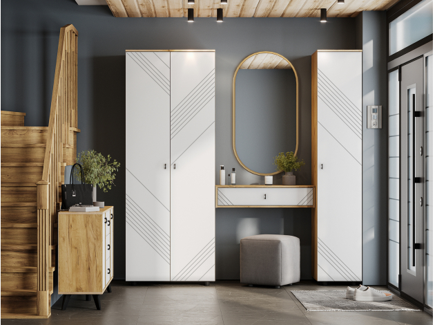 Шкаф-пенал Кайло Дуб золотой / Белый матовый