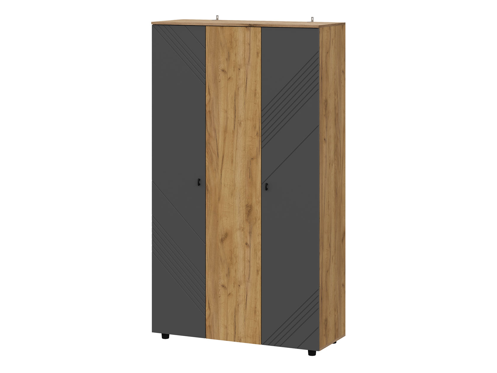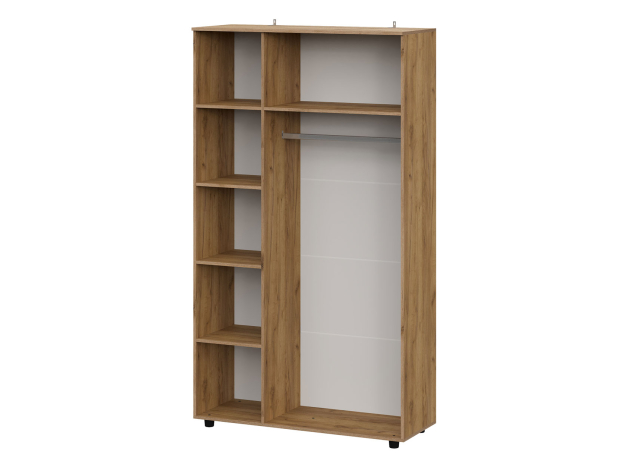 Распашной шкаф Кайло Стандарт поможет организовать удобное пространство для хранения одежды. За глухими дверцами скрыты вместительная секция со штангой для вешалок и полки для хранения сезонных вещей. Фасады украшены фрезеровкой в виде геометрического узора, что придает обстановке динамичности. Небольшие ножки делают мебель устойчивой на полу с перепадами высоты.