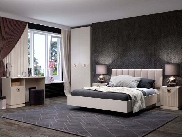 Распашной шкаф Капри оснащен стандартным наполнением для размещения одежды на плечиках и хранения вещей в сложенном виде. В комплектации с зеркалами модель делает комнату визуально просторнее и позволяет оценить подобранный образ в полный рост. Дверцы с фрезеровкой и золотым декором добавляют уникальный штрих в оформление интерьера.