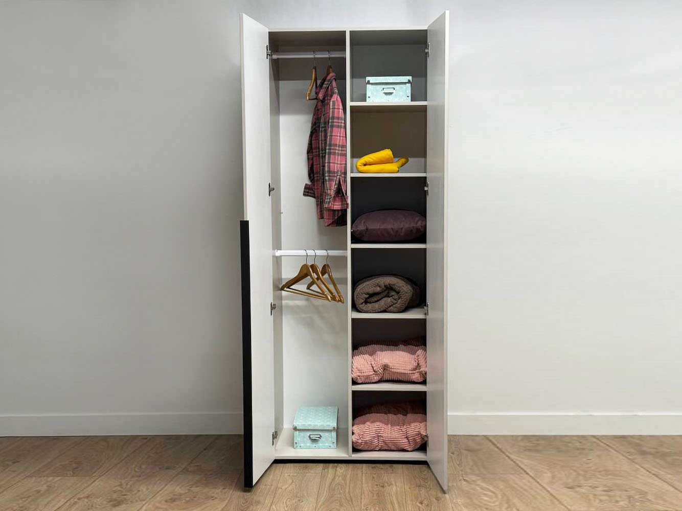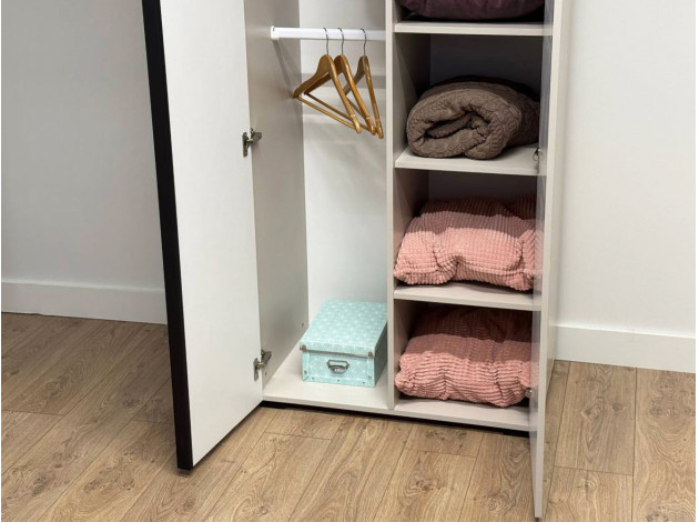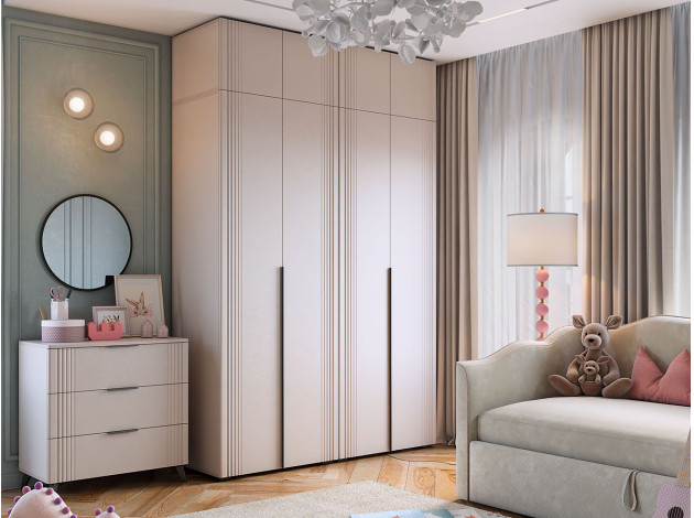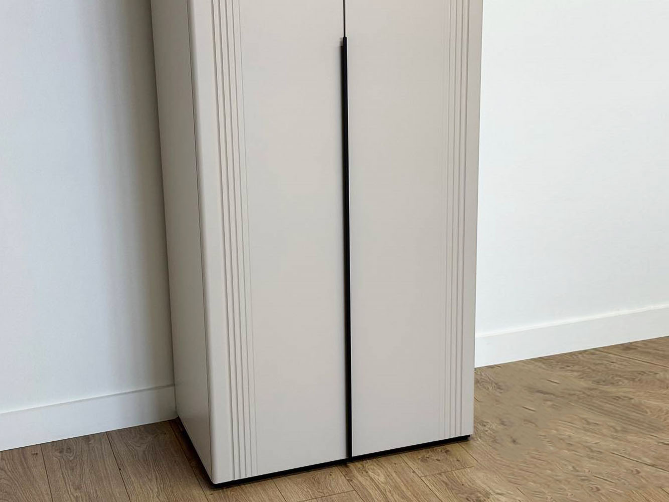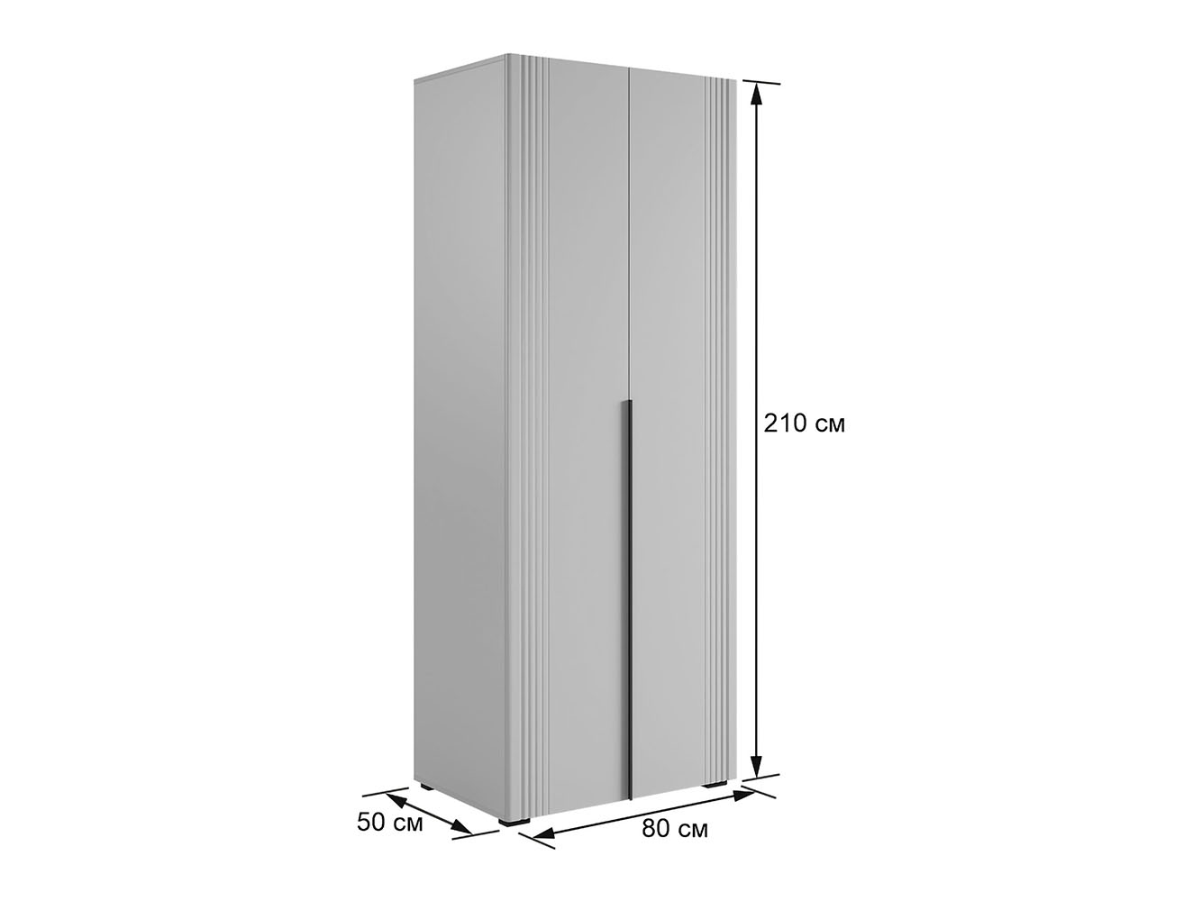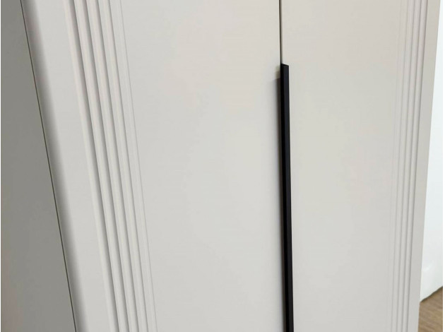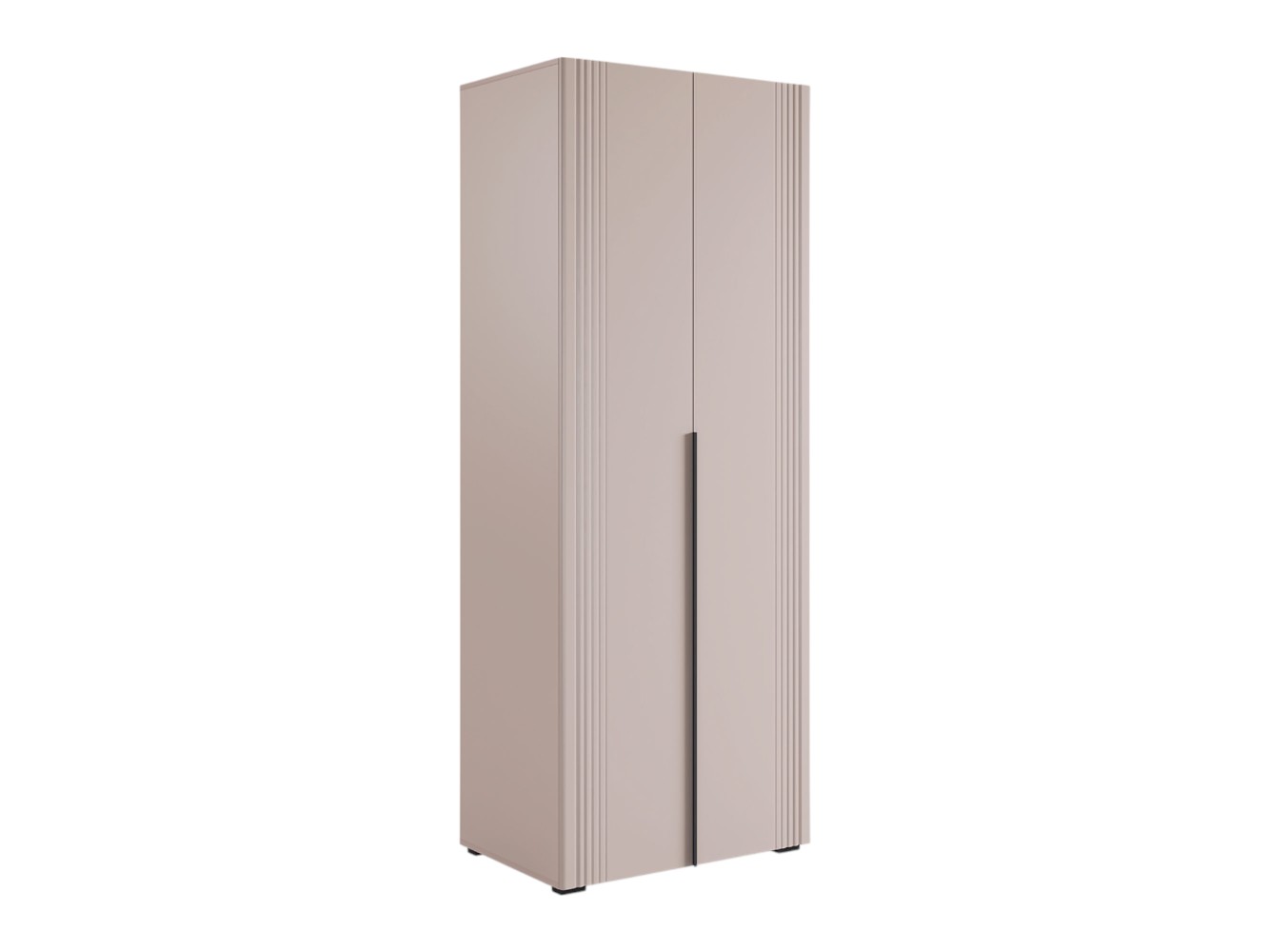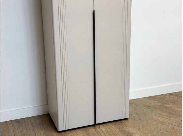 Распашной шкаф Катрин 2 двери организует порядок в вещах и станет актуальным дополнением современного интерьера. Матовые фасады с длинными вертикальными ручками и тонкими линиями фрезеровки смотрятся очень стильно, но не перегружают обстановку нарочитыми деталями. Специальное покрытие защищает поверхность от повреждений.