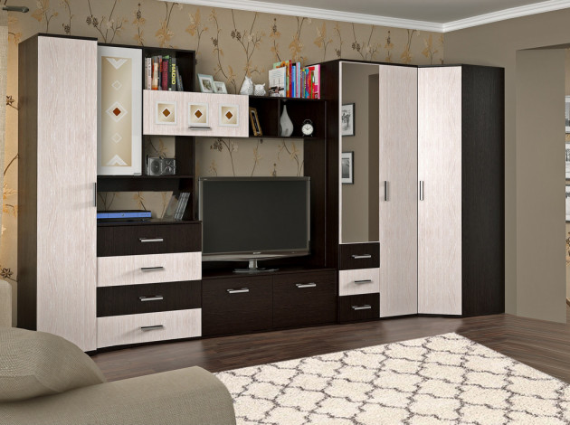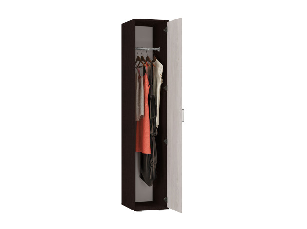 Распашной шкаф Белла расширяет функционал гостиной. В нишах много места для хранения одежды и постельного белья. Популярное сочетание оттенков позволяет вписать модель в любой интерьер.