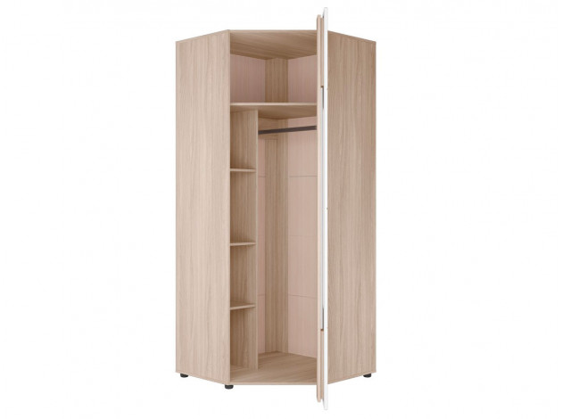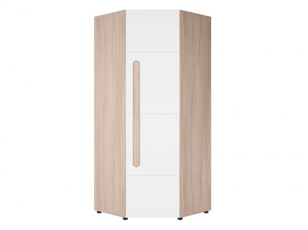 Изящный угловой шкаф Палермо С выполнен в минималистичном дизайне, но при этом не лишен функциональности. Продолговатая выемка на двери шкафа заменяет ручку: при открытии шкафа не придется касаться глянцевой поверхности, тем самым дверца будет меньше пачкаться.